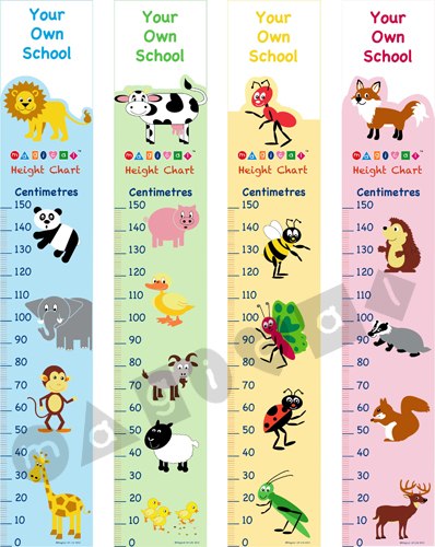 Colourful, rigid and washable; this fun jungle chart measures to a height of 150cm. Can be personalised with individual child's name or a school logo. MUK code: MUK1003