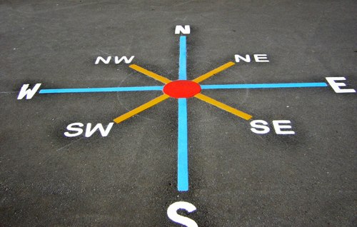 Lots of games can be played on this compass. Passing the ball, dribbling a ball in and out of the spots. Learning where and how a compass is useful. Pig in the middle. North, South, East, West.