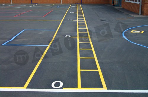 This marking has numbers placed every 5 metres with each of the other lines denoting 1 metre distance.